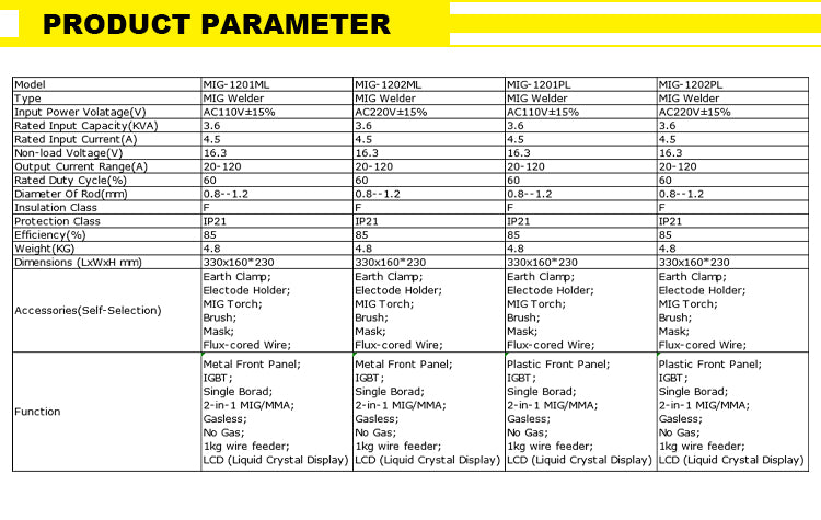MIG-1202ML 2023 Factory hot Mma Mig Lift-tig Metal Gasless 1Kg Wire Holder 220V Lcd Portable Welding Machi