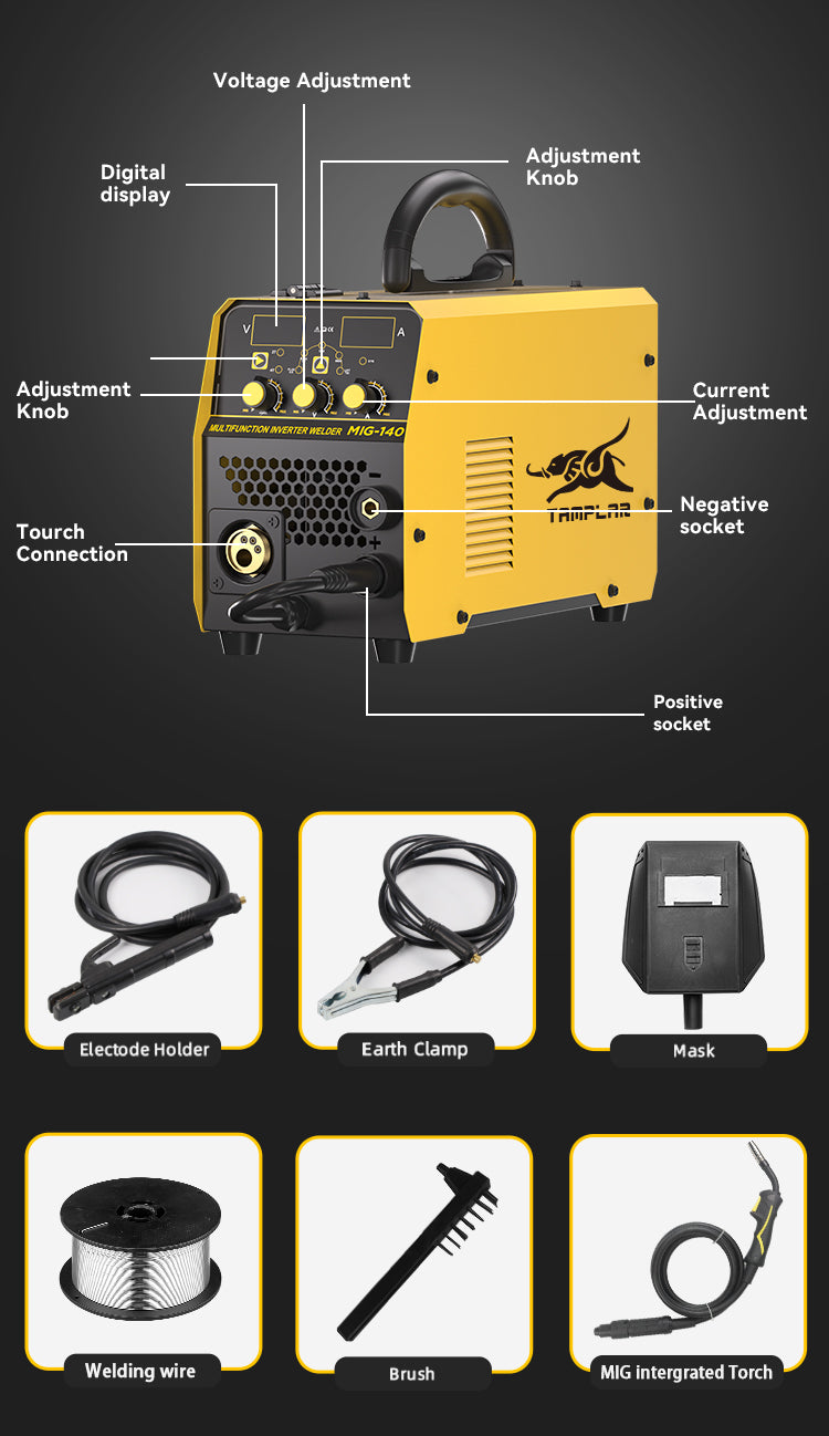·4-in-1 MIG/MMA/LIFT-TIG function, Gas/Gasless, can welding solid wire or Flux-cored wire for MIG.