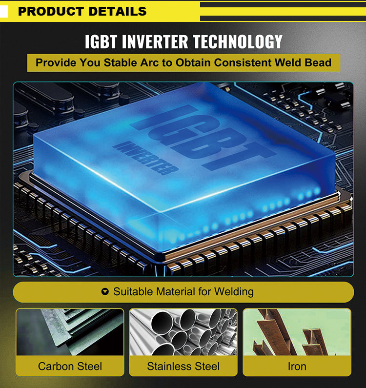 ·IGBT Inverter Stable arc, Small splash, Anti-interference, Firm thrust, and stable performance.
