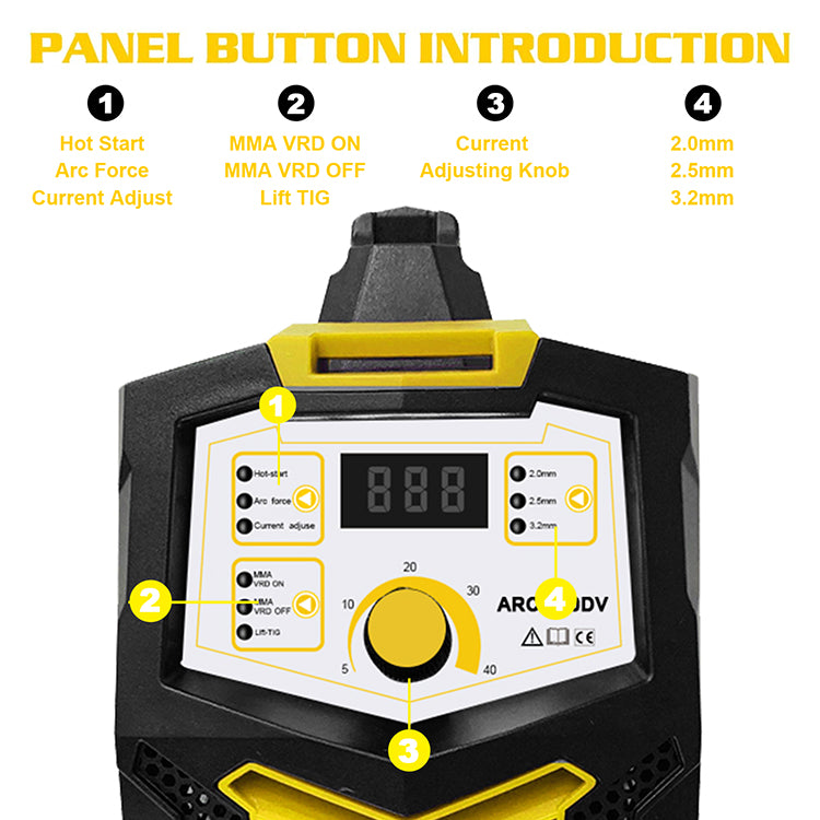·Siła łuku: Możliwość regulacji w celu zwiększenia prądu spawania przy niskim prądzie, aby zapobiec przerwaniu łuku i zapewnić płynne spawanie.