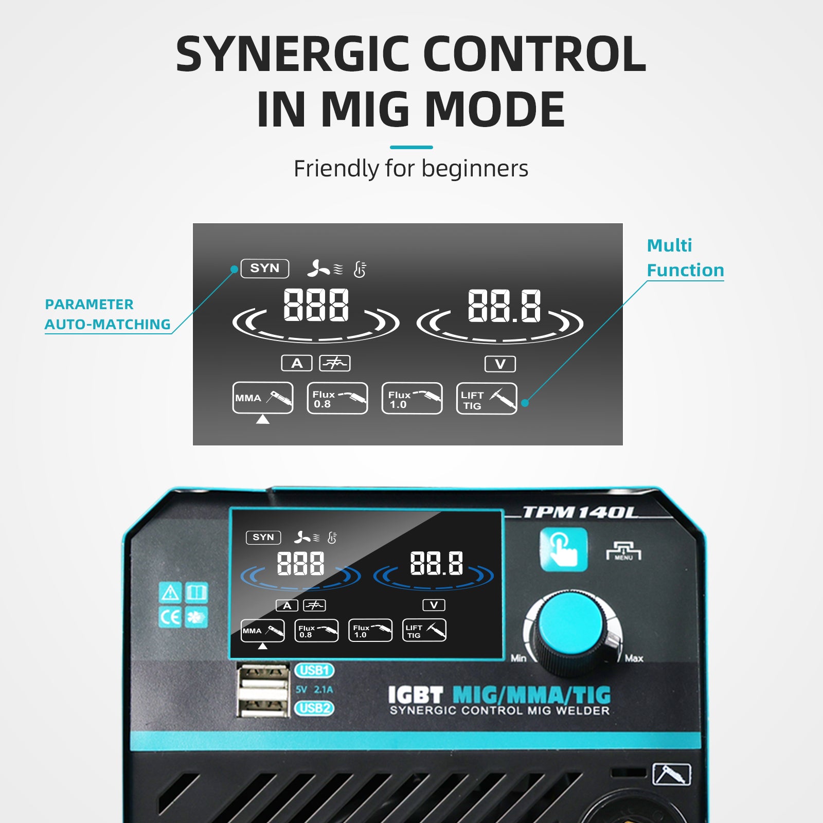 TTAMPLAR TPM-140L spawarka MIG z wyświetlaczem LCD